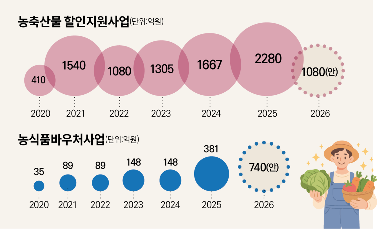 전문가들은 재정 배분의 우선순위를 바꿔, 할인지원보다 농식품바우처 사업 확대에 초점을 맞춰야 한다고 강조한다.